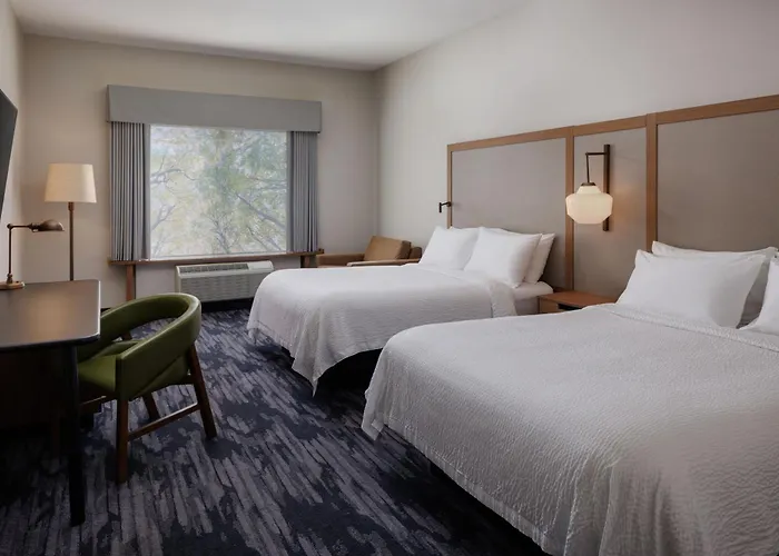 The comfortable 3-star Fairfield Inn & Suites By Marriott Kelowna, located a 5-minute drive from Mission Creek Regional Park, offers guests a currency exchange and a cash machine. The pet-friendly inn is in a cultural area, at a 3.2 km distance from such natural sights as the family run 14 acre cherry u - pick farm "Kempf Orchards".